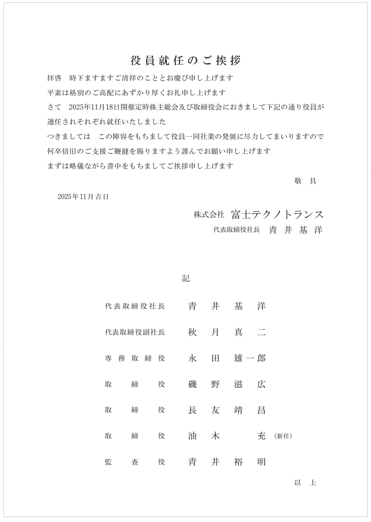 引続きご愛顧を賜ります様お願い申し上げます。